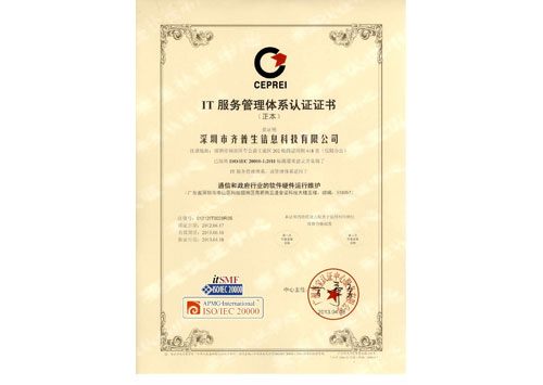 IT服務管理體系認證證書(英文)